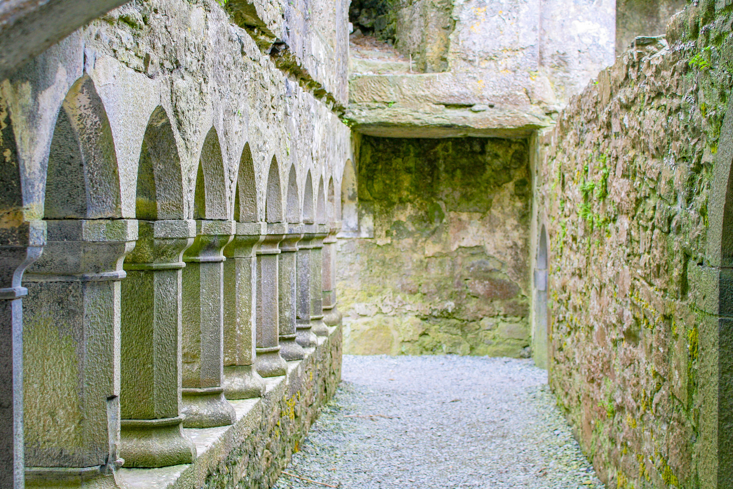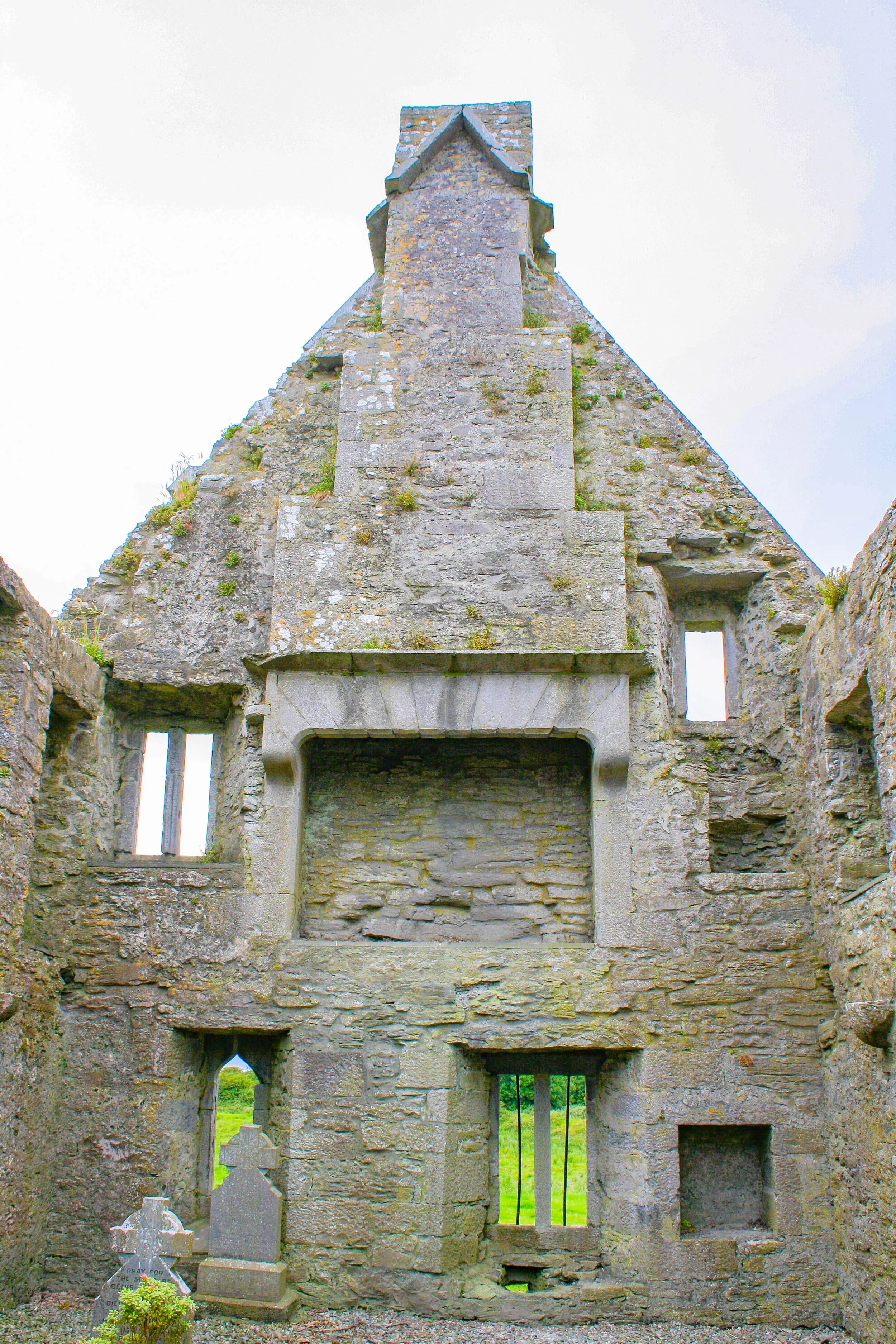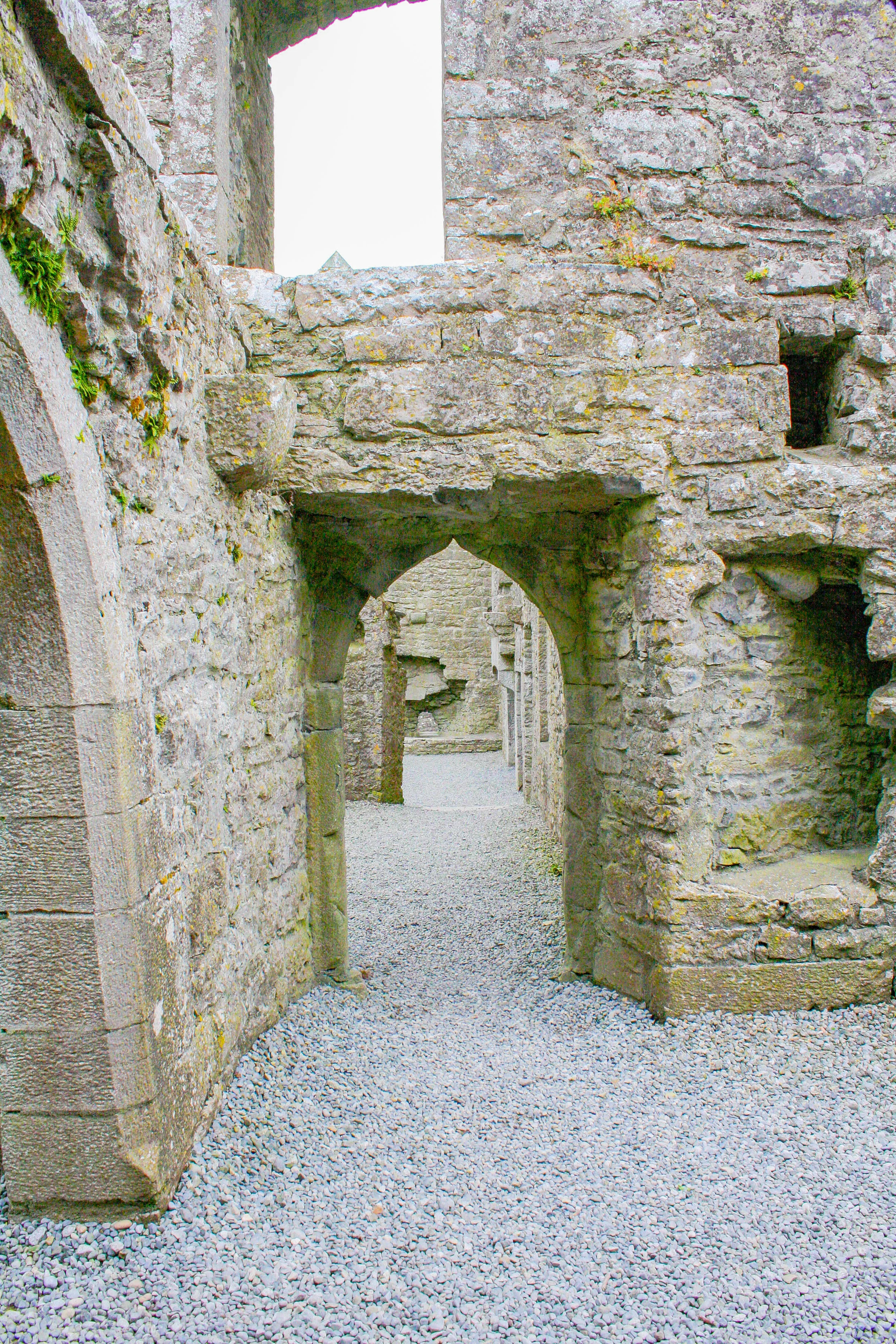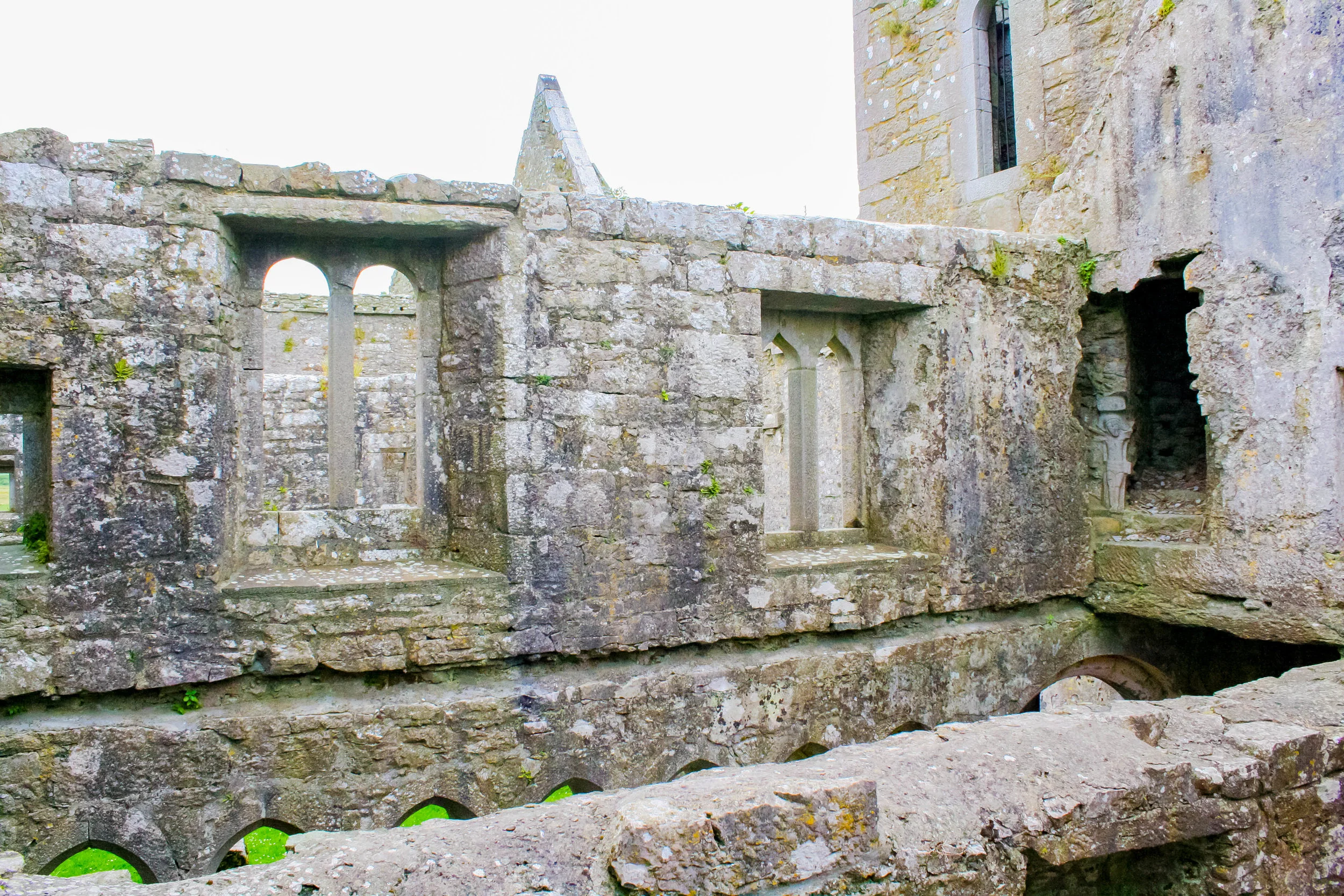 Walking through the dilapidating hallways, and climbing up crumbling stairwells that lead to the skeletal walkways made from walls missing their roofs. Façades of outer walls still piercing the gray sky with their massive archways and Gaelic shaped windows. The inner cloister is still preserved, with its pillars standing firm, allowing a decorative frame to the grass courtyard within. From the eerie Jesus carving revealed through the remains of a second story wall to the chilling cold spot tucked away in the only stairwell still intact this place tells a story filled with sadness that started out with the noblest of intentions.