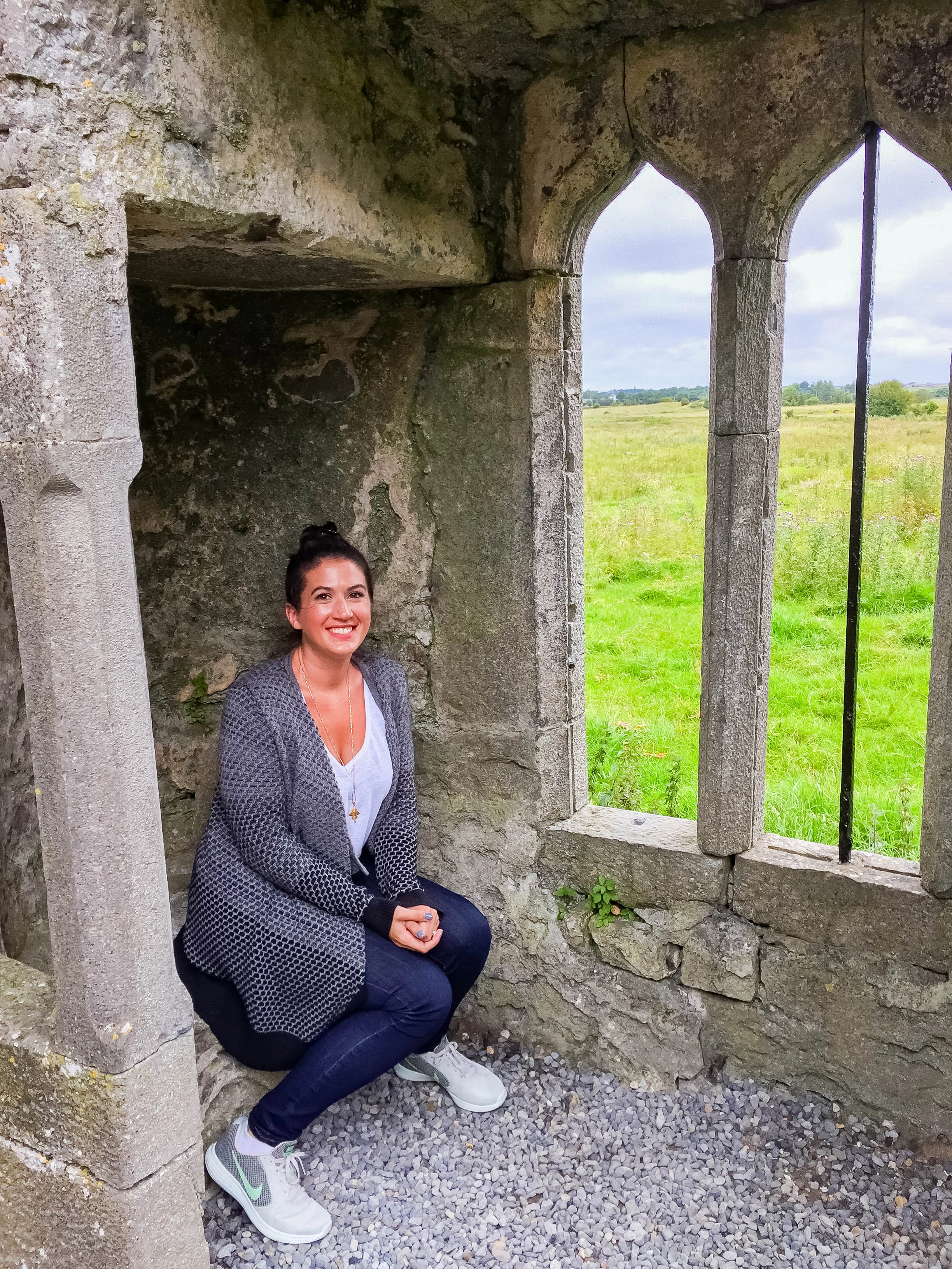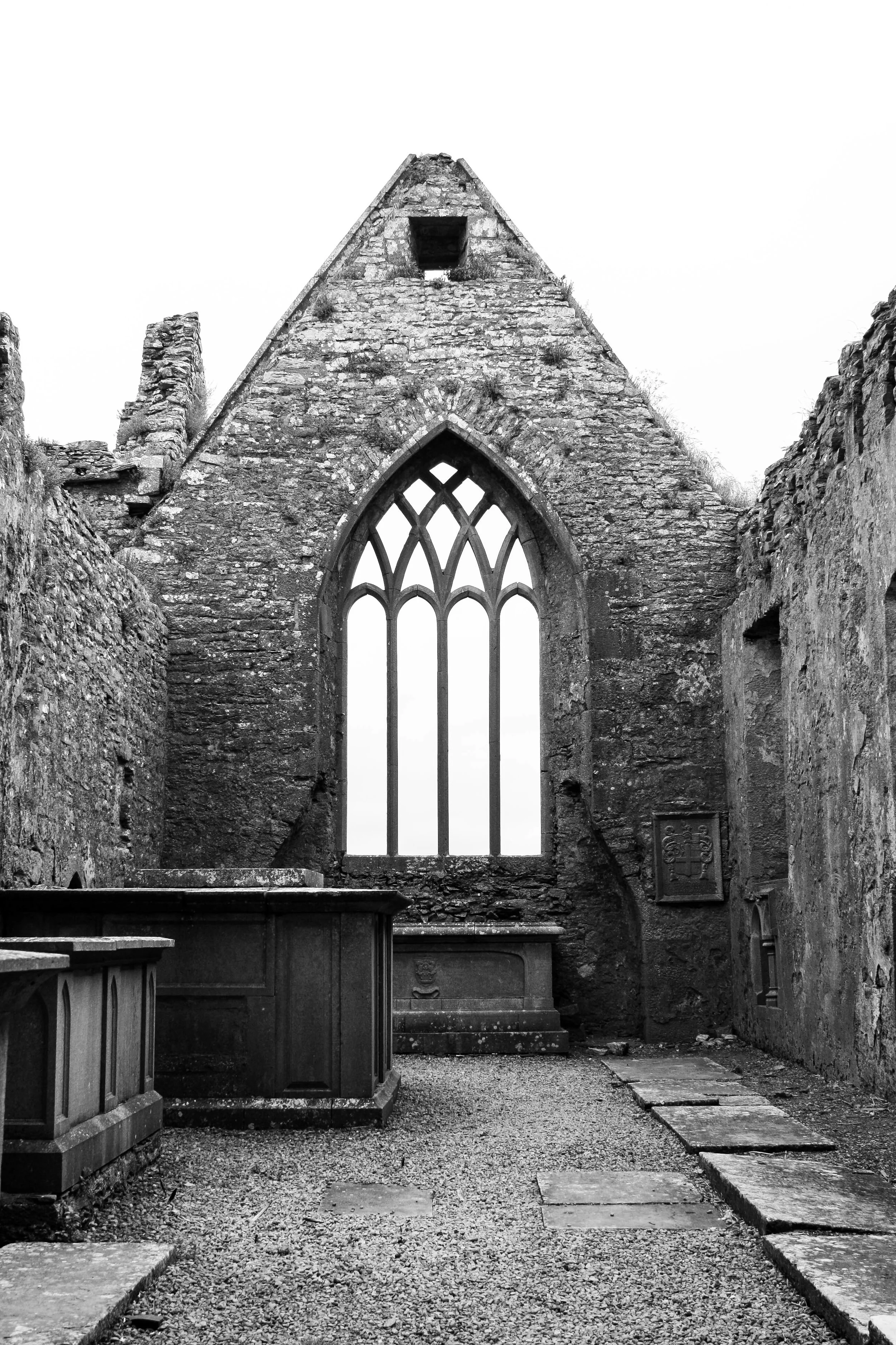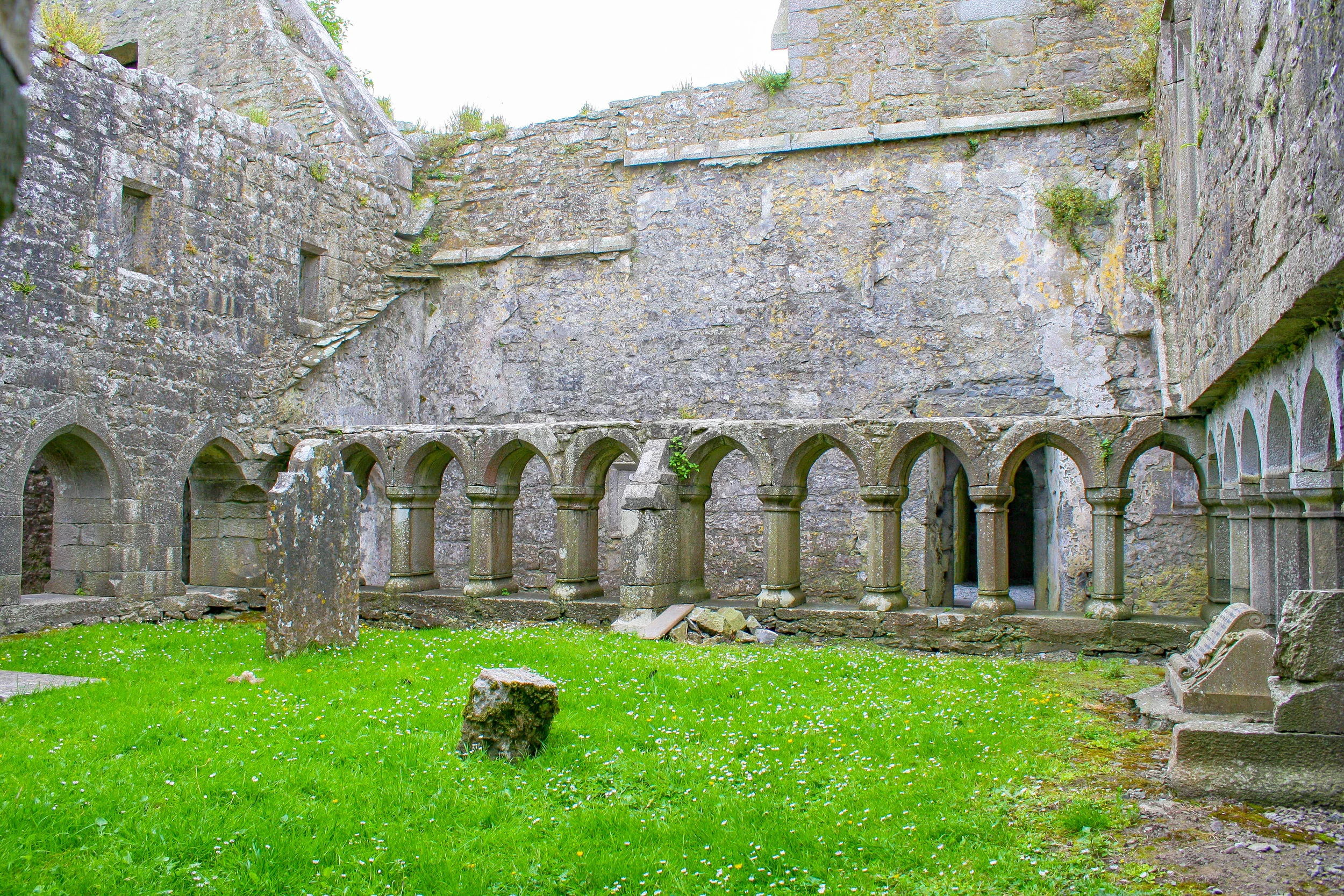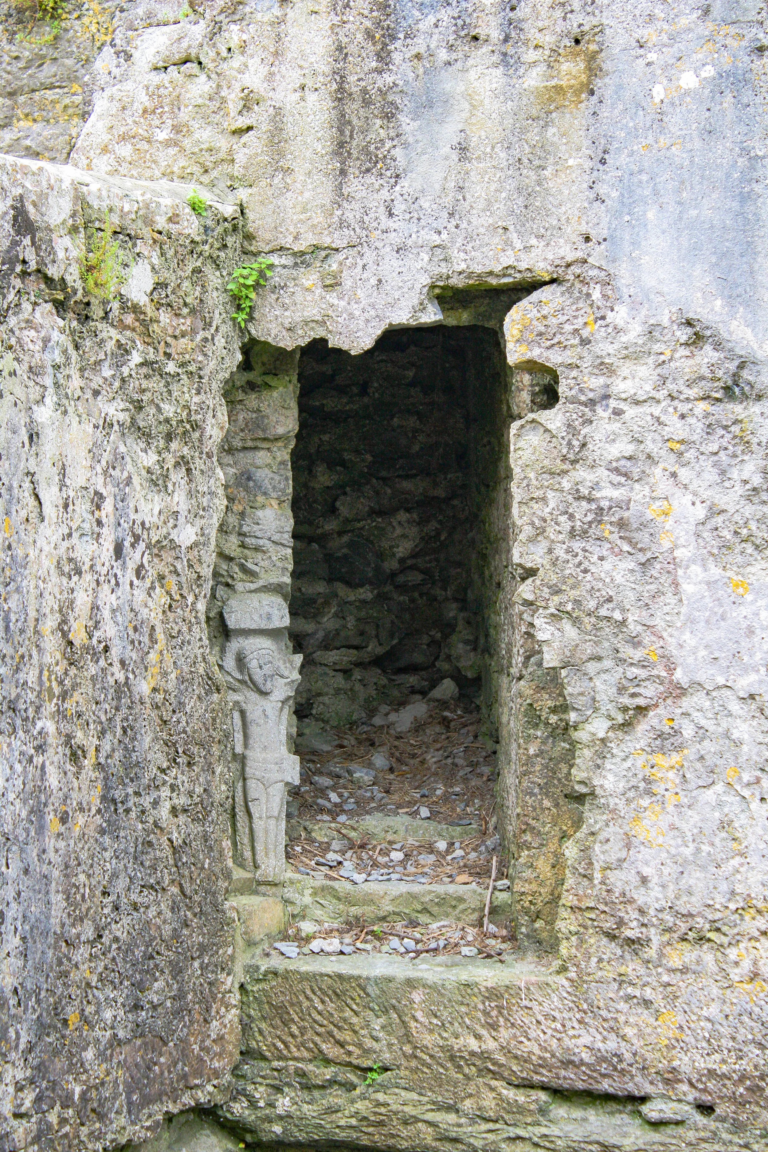 Walking through the dilapidating hallways, and climbing up crumbling stairwells that lead to the skeletal walkways made from walls missing their roofs. Façades of outer walls still piercing the gray sky with their massive archways and Gaelic shaped windows. The inner cloister is still preserved, with its pillars standing firm, allowing a decorative frame to the grass courtyard within. From the eerie Jesus carving revealed through the remains of a second story wall to the chilling cold spot tucked away in the only stairwell still intact this place tells a story filled with sadness that started out with the noblest of intentions.